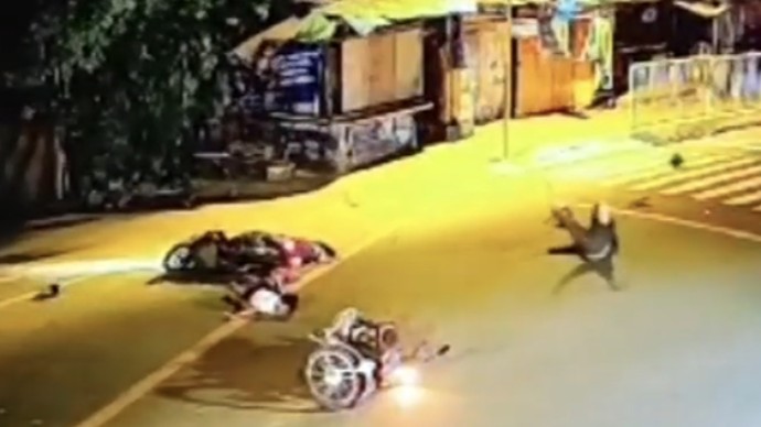 The impact threw the delivery rider off his vehicle and to the pavement. It was at this point that another motorcycle hit him.