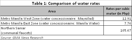 Yet the people of Northern Samar pay more for their supply of water, an essential human right explicitly recognized by the United Nations, than residents of Metro Manila where the Philippine capital is located.