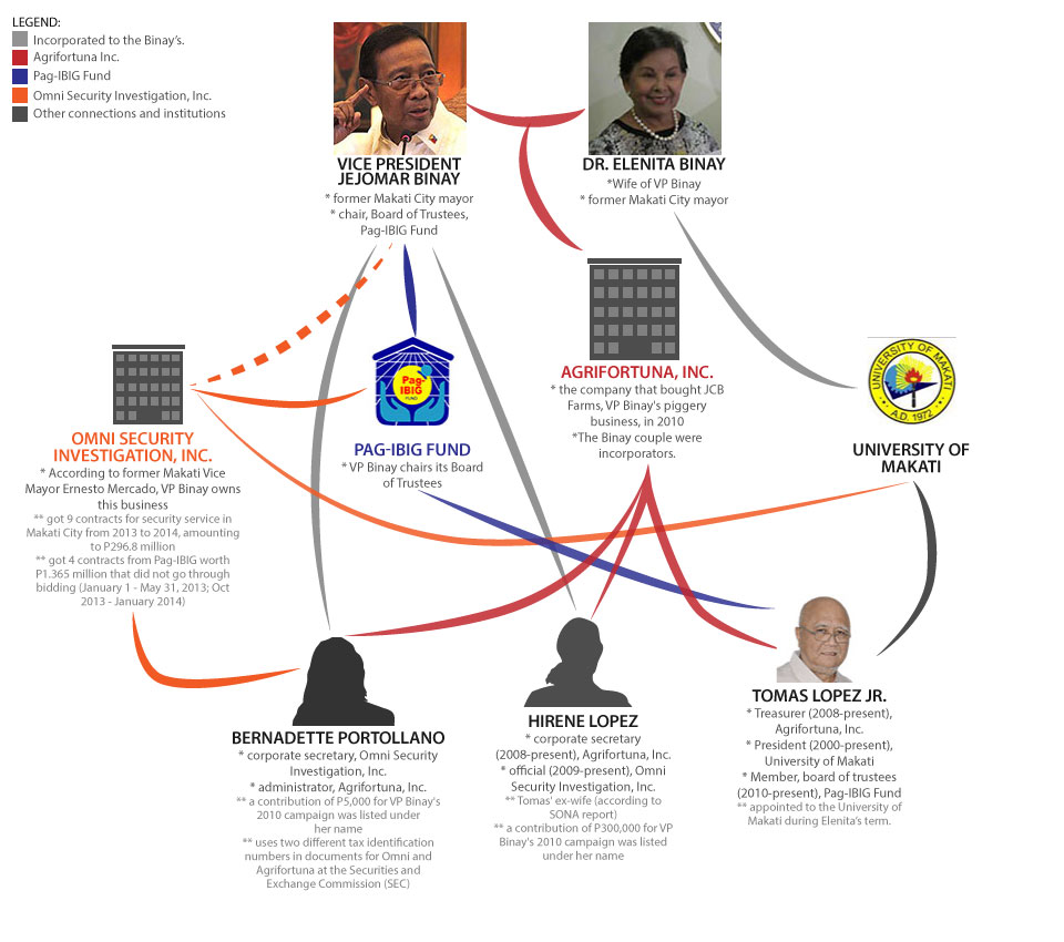 Two officials for both Agrifortuna and Omni Security – Hirene Lopez and Bernadette Portollano – were named as campaign donors to Binay's vice presidential bid in 2010.
