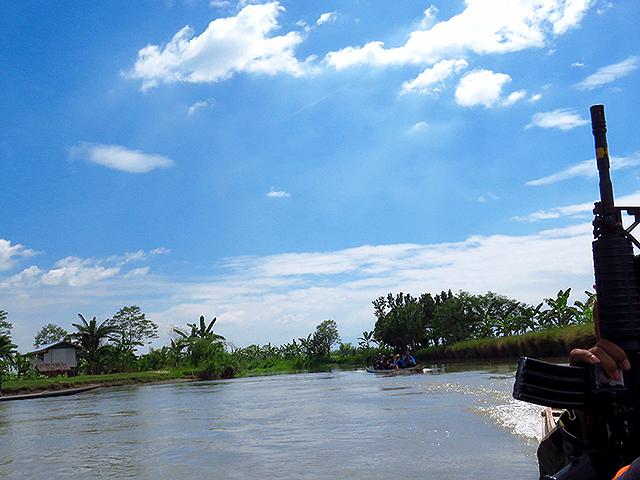 After navigating what seemed to be a maze of tributaries, our boat convoy reached a wide, fast flowing river. According to our guide, a kilometer downstream, we will reach the area where the SAF commandos crossed to get to their target.