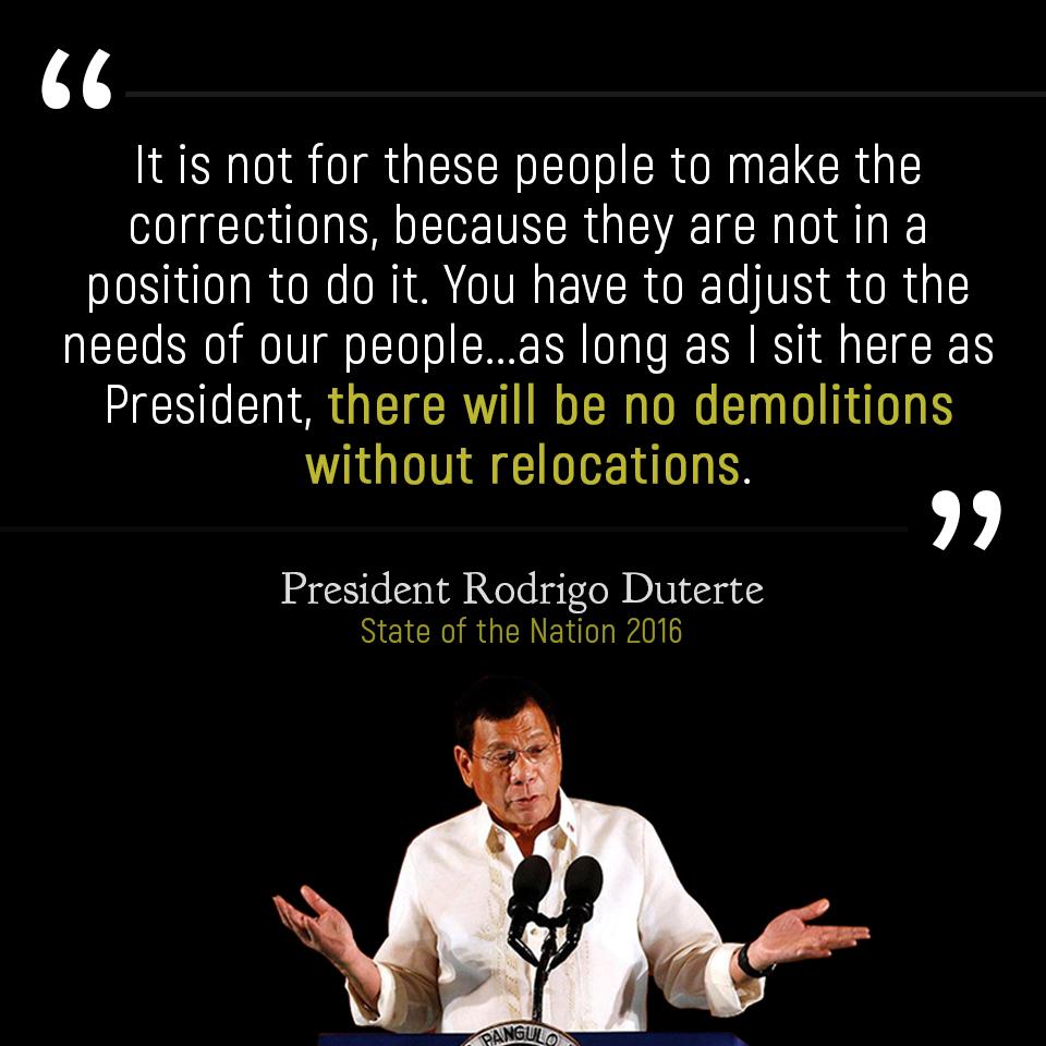 Duterte made an earlier pronouncement that there would be no demolitions of houses if there will be no relocation for informal settlers.