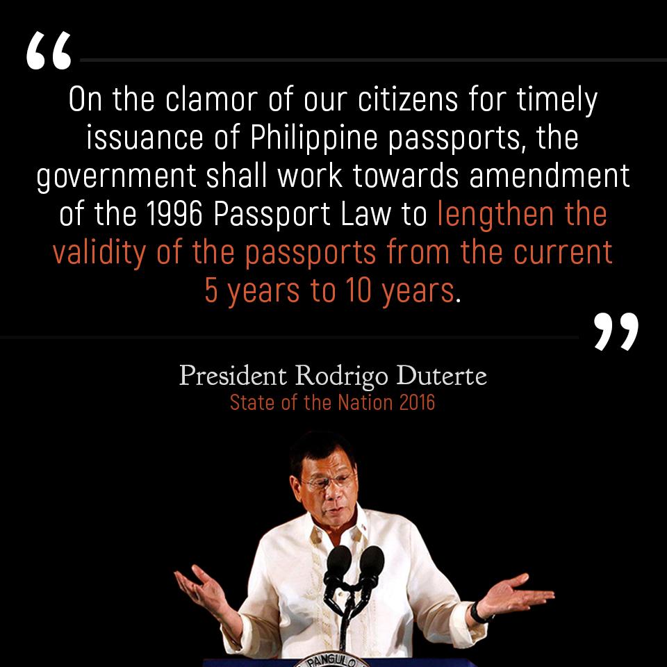 "Upon the instructions of the President, the DFA is working with the Senate and the House of Representatives on the extension of the validity of the Philippine passport. The bill amending RA 8239 has already passed both the House of Representatives and the Senate," the DFA wrote.