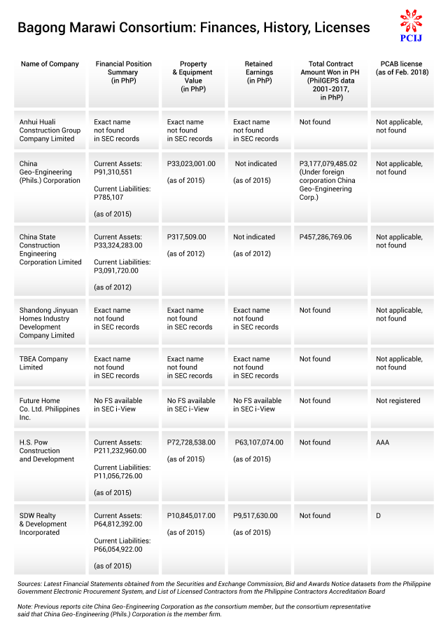 Del Rosario told PCIJ that in his view, the two firms are joining the BMC as private contractors and that no official development assistance or loans from China would bankroll Marawi's ground-zero projects.