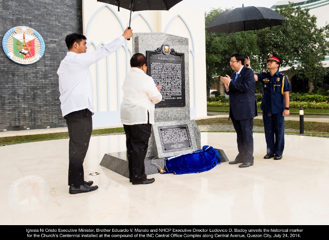 Bilang bahagi sa selebrasyon ng ika-100 anibersaryo ng Iglesia Ni Cristo, isang makasaysayang marker na may official seal ng INC ang pinasinayaan noong Biyernes ng National Historical Commission of the Philippines sa loob ng INC Central Office Complex sa Quezon City.