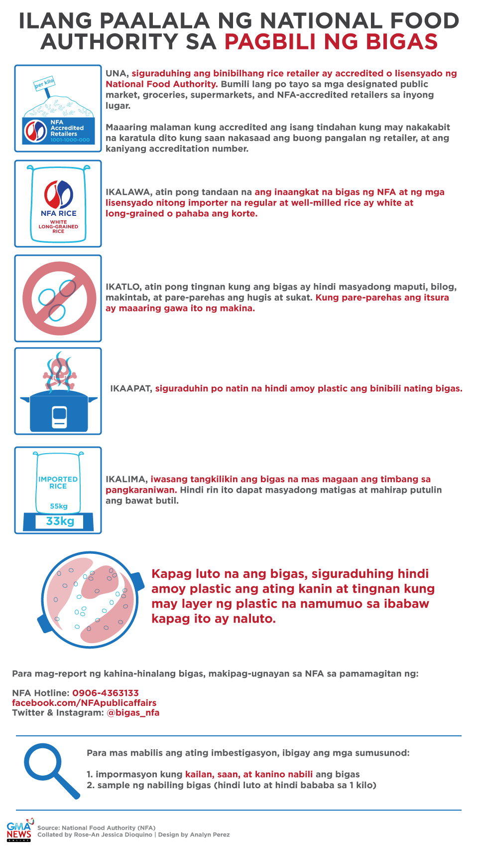 Nagpalabas ng isang abiso o advisory ang NFA upang malaman ng publiko kung paano suriin ang bigas na bibilhin at kung paano hunigi ng tulong mula sa NFA.