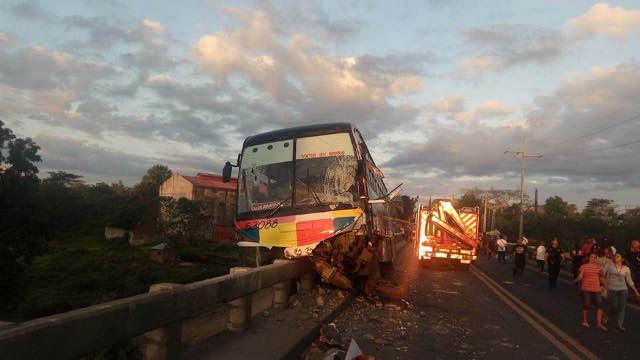 Sa paunang imbestigasyon, binangga ng bus ang isang jeep na may kargang kahoy