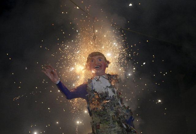 Isa sa mga effigy ni Donald Trump na sinunog sa Mexico bilang bahagi ng Easter rituals. --Larawan mula sa Reuters