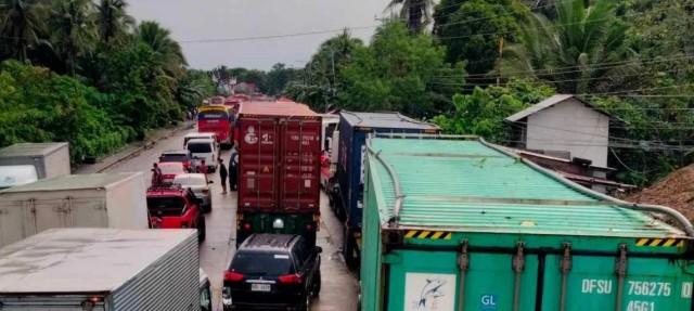Apektado ng matinding pagsisikip sa daloy ng trapiko ang biyahe ng mga pampasaherong bus at mga cargo delivery truck. — Peewee Bacuno/ VDV, GMA Integrated News