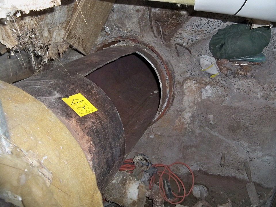 A note saying 'Have a nice day', left on an opening in the pipe where two inmates are suspected to have cut open as part of their escape from Clinton Correctional Facility in Dannemora, New York, is seen in this handout photo taken June 6, 2015 and released on June 7, 2015. The two convicted murderers, who used power tools to break out of the maximum security prison, may have had help, and left the taunting note for their jailors, authorities said on Sunday. REUTERS/New York Governor's Press Office/Handout via Reuters
