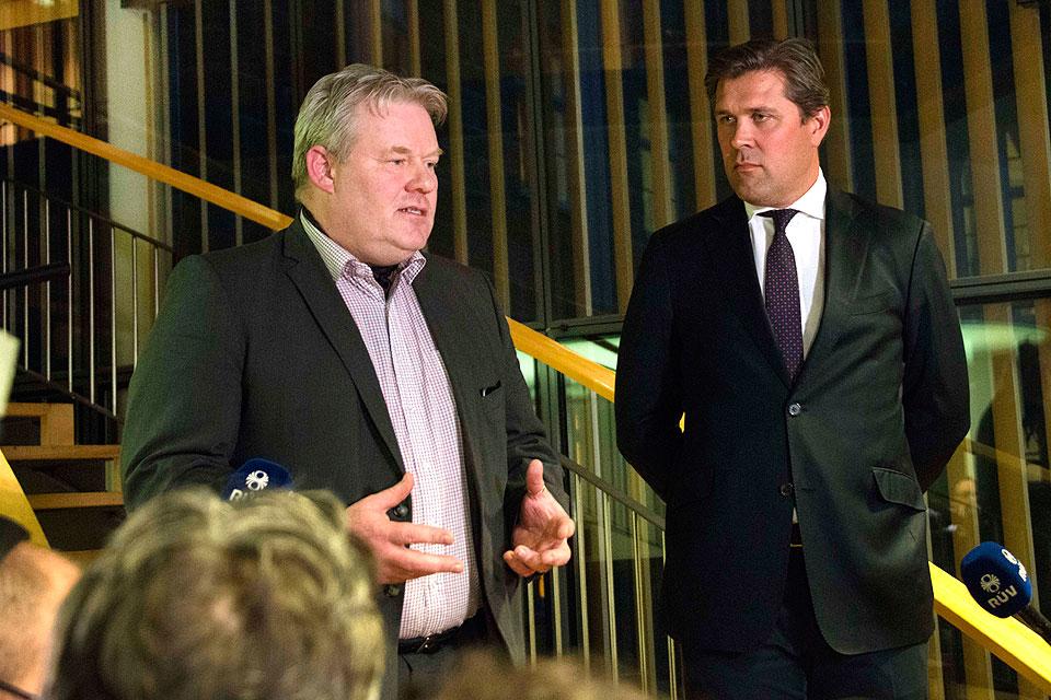 Iceland's new prime mininster Sigurdur Ingi Johannsson (left) of the Progressive Party’s and Bjarni Benediktsson (right) finance minister of the Independence Party address members of the media after a meeting at Althingi, the parliament in Reykjavik, Iceland on Wednesday, April 6, 2016. Prime Minister Sigmundur David Gunnlaugsson was forced to resigne, his party on April 5, 2016, the first major political casualty to emerge from the leak of the so-called Panama Papers financial documents. AFP/Halldor KolbeinsGunnlaugsson, who remains the head of the Progressive Party for the time being, was the first major political casualty to emerge from the leak of millions of documents detailing offshore accounts held by world leaders and celebrities.