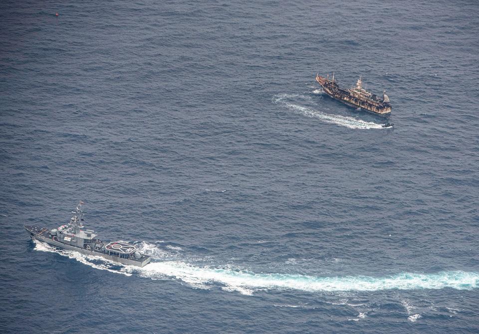 The navy conducted a patrol mission on Friday that included a flyover of the region where some 260 hulking vessels are fishing, as well as reconnaissance by military patrol ships.