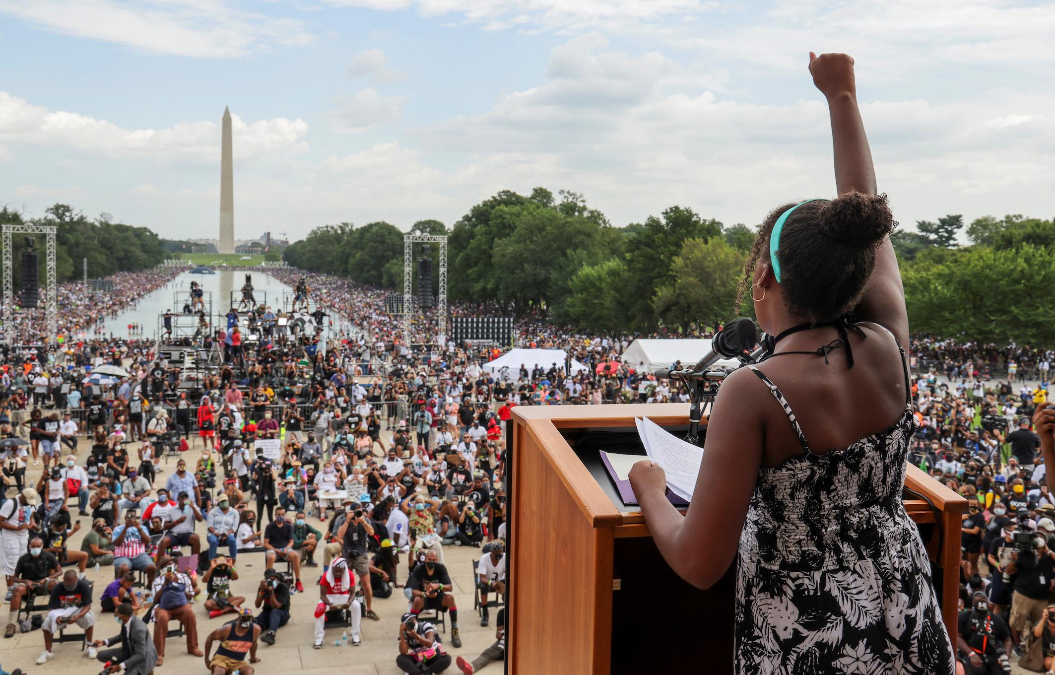 The half-mile march from the Lincoln Memorial to the Martin Luther King Memorial, on a hot, humid day in the U.S. capital, comes amid a summer of racial unrest book-ended by two high-profile incidents in which Black men were shot by police.