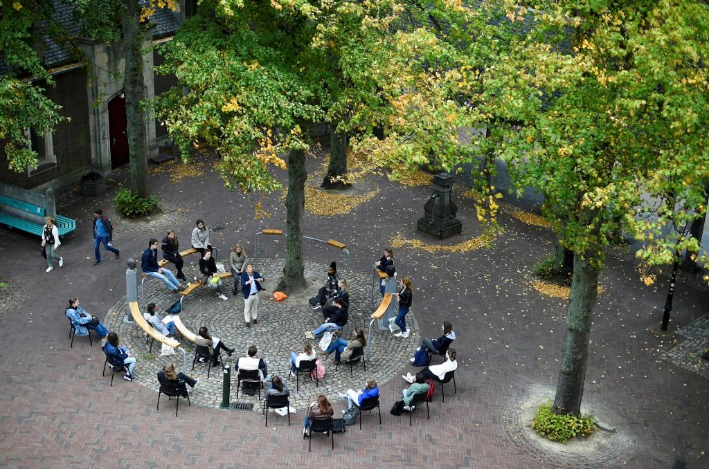 A Dutch university is holding open-air classes in parks, public squares and parking lots to limit the number of lectures taking place online because of the coronavirus pandemic.