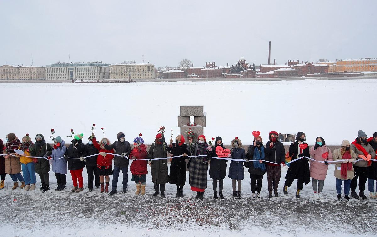Russian women form Valentine’s Day chains to protest crackdown