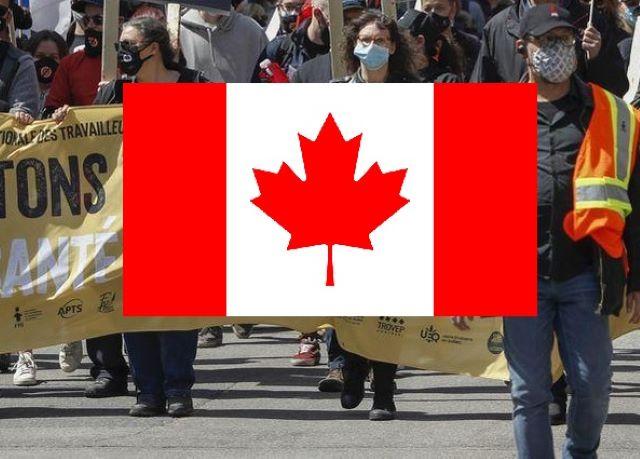 Tens of thousands of protesters marched Saturday at Montreal's Olympic Stadium, rallying against restrictions imposed by the government to stem a third wave of the coronavirus pandemic in Canada.