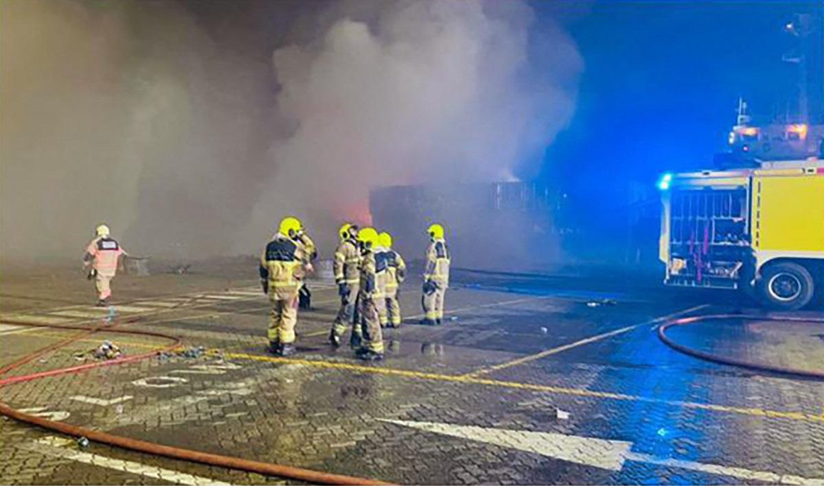 Firefighters rushed to the scene at Jebel Ali Port to tackle the blaze that broke out on a large vessel stacked with containers which authorities said had been preparing to dock.