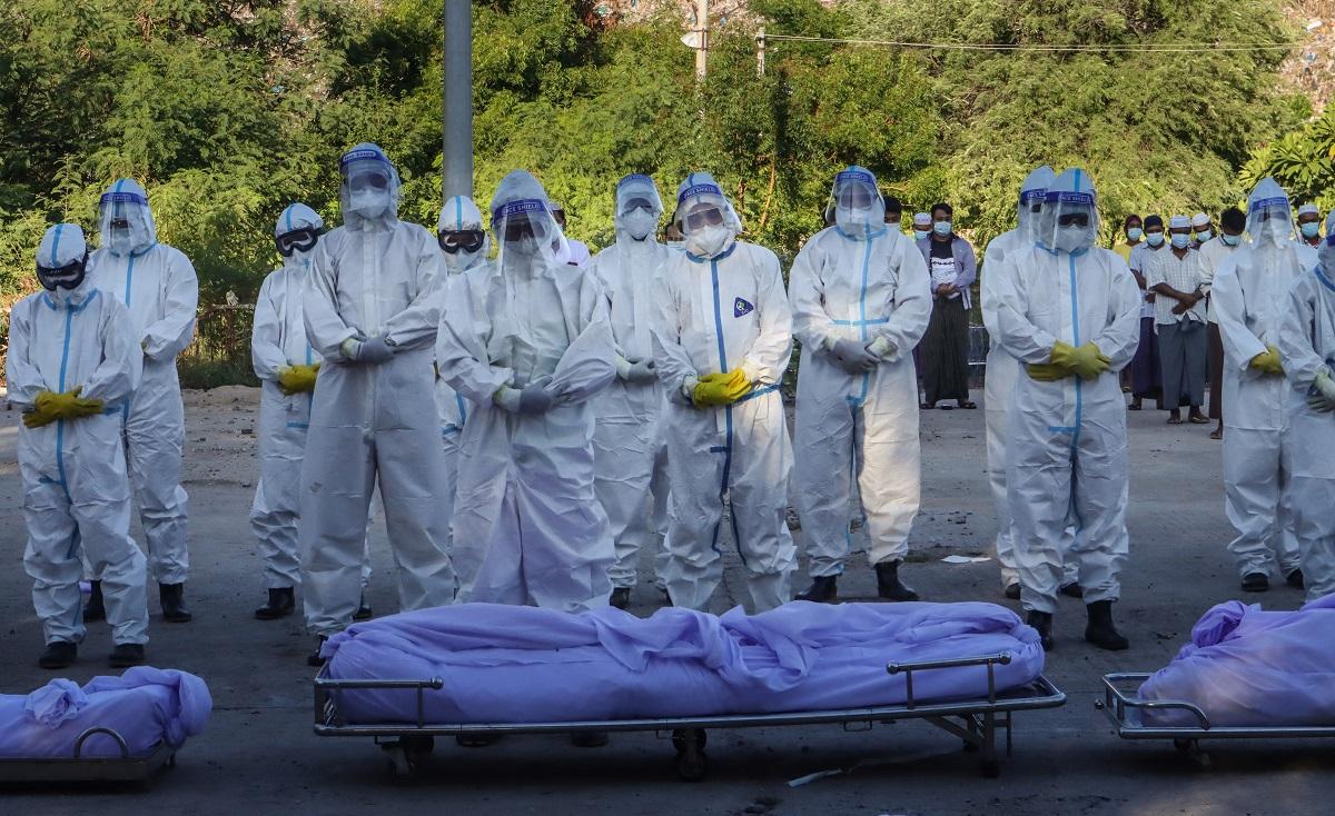 YANGON, Myanmar — With hospitals in junta-run Myanmar empty of pro-democracy medical staff and coronavirus cases surging nationwide, volunteers are going house-to-house to collect the fast-rising number of victims dying in their homes.
