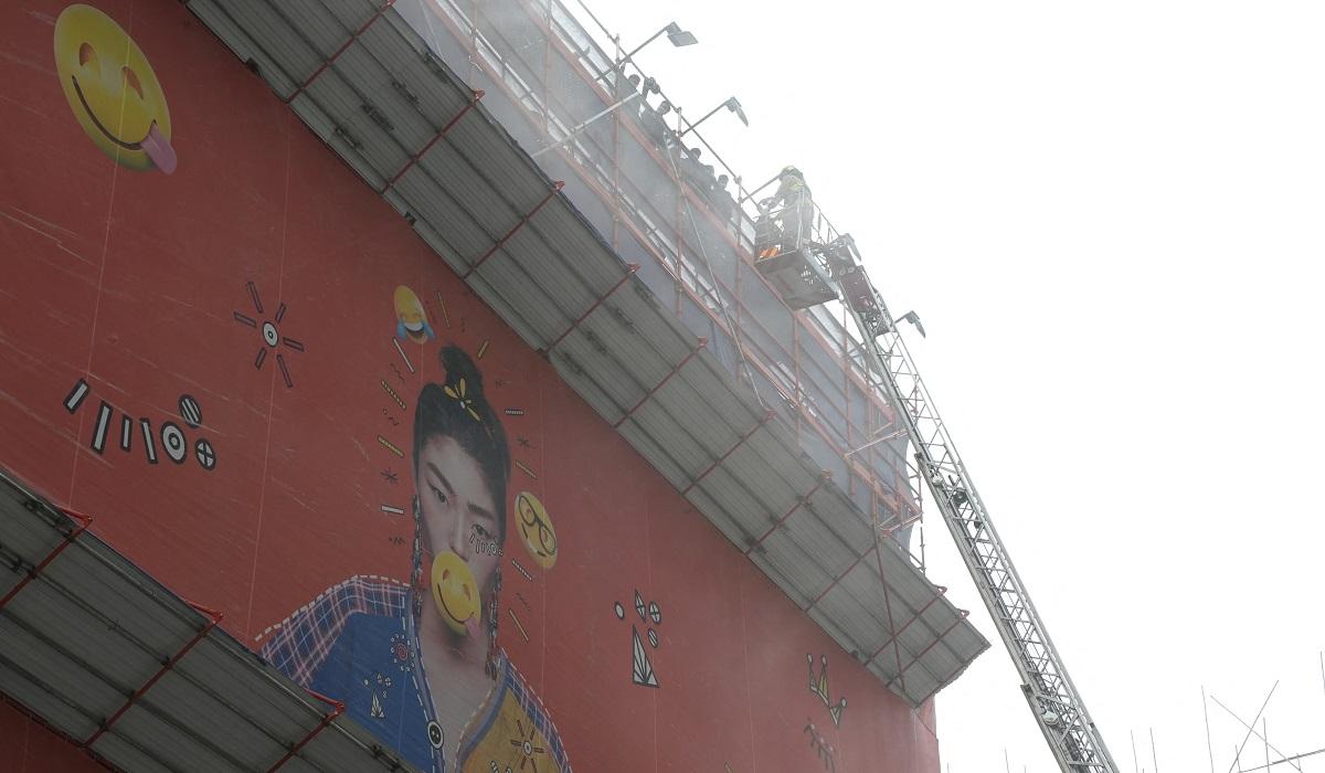 The fire broke out in a utility room on a lower level of the building's mall at noon, media said, before it spread to bamboo scaffolding cladding the exterior.