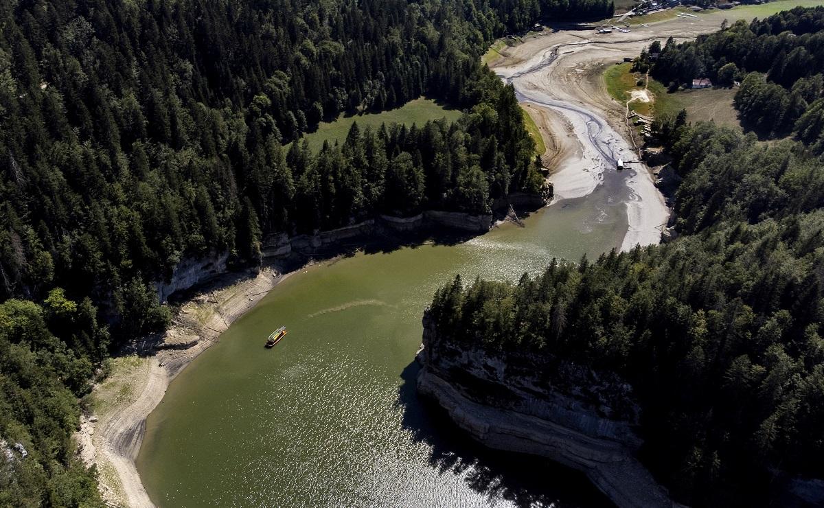 The Doubs river should course through a forested canyon and cascade over waterfalls before spilling out into Brenets Lake, a draw for tourists in eastern France's Jura region. After months without meaningful rain, the river water has receded up the canyon and sluggishly reaches the lake in a narrow channel.