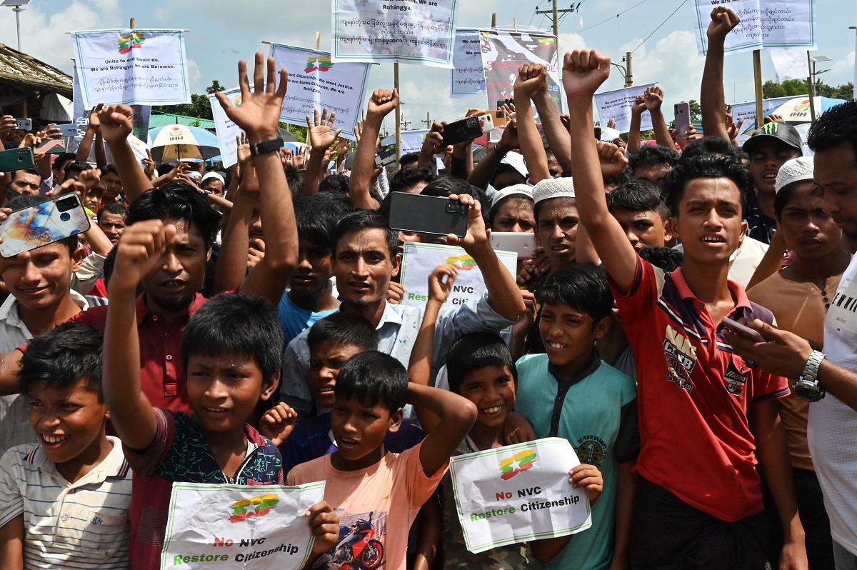 Many shouted slogans also demanding the repeal of a 1982 law that stripped them of their citizenship in Myanmar, where they are widely seen as foreigners.