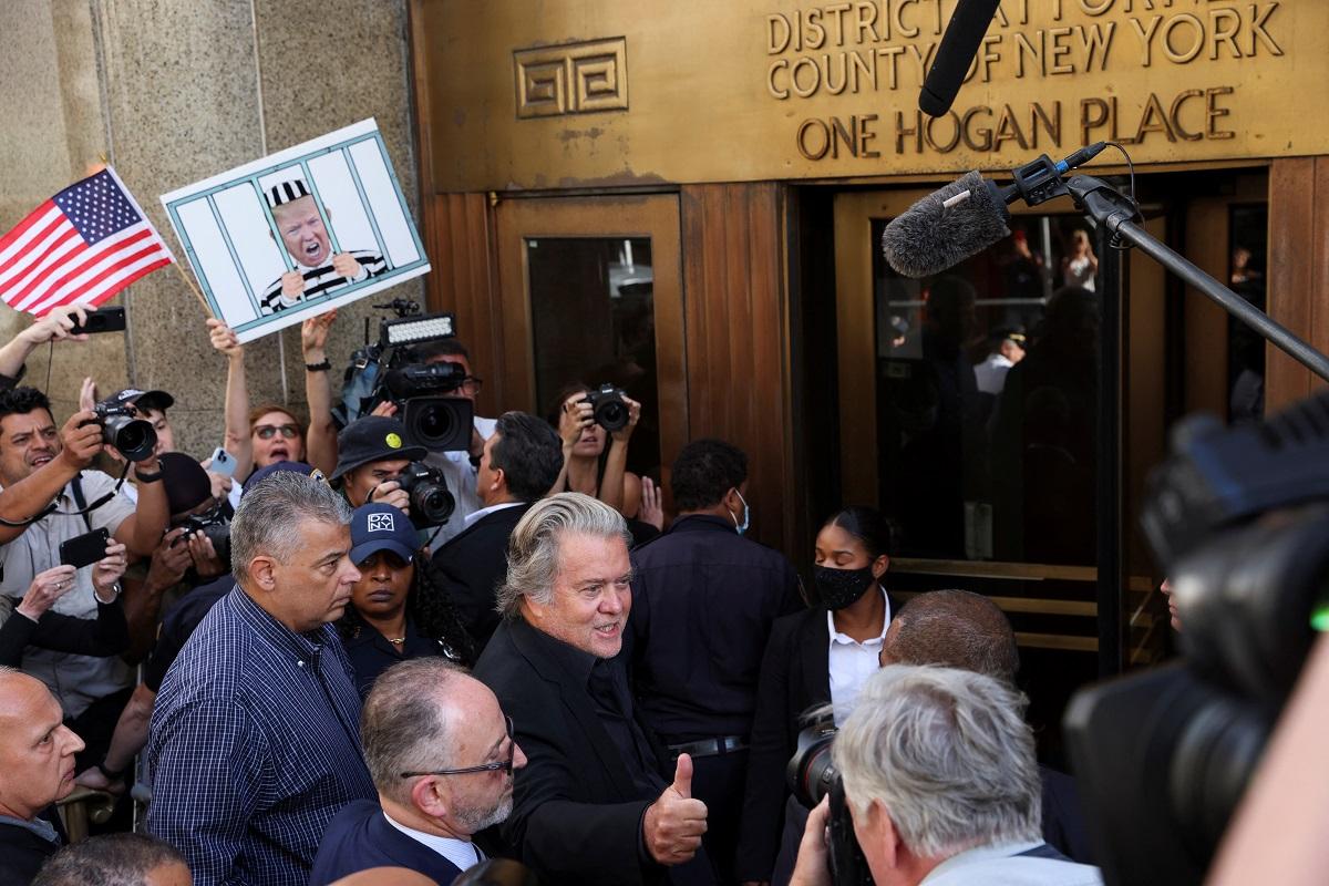 "This is an irony," Bannon said outside Bragg's office, where he surrendered to face the charges.
