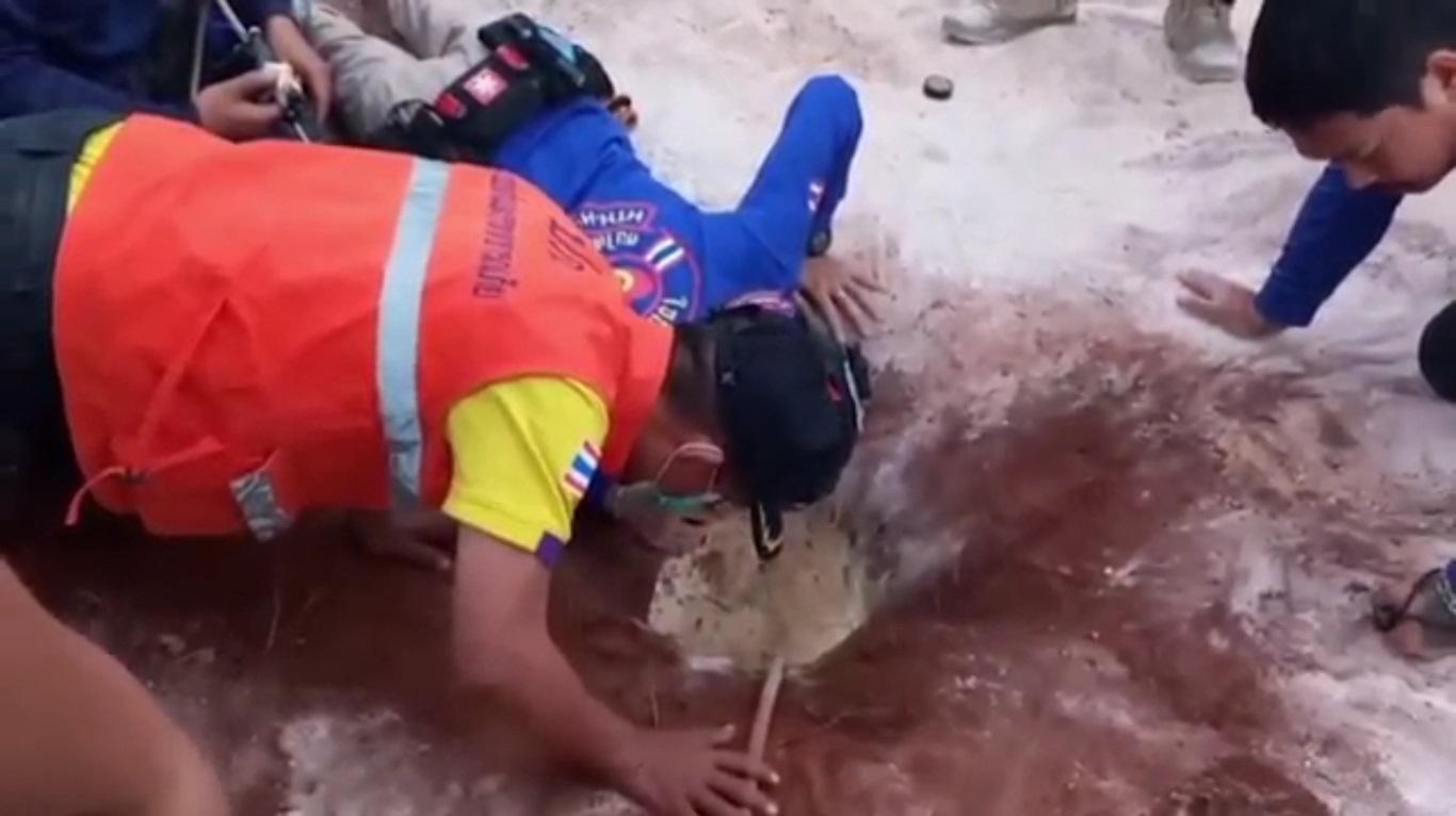 Rescuers worked through the night using a mechanical digger to reach the girl, who is the daughter of migrant workers from Myanmar.
