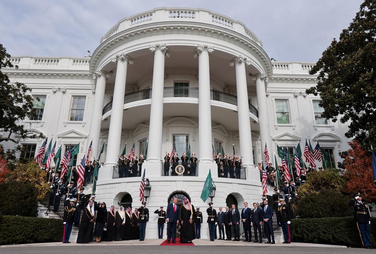 Making his first White House visit in more than seven years, the crown prince was greeted with a lavish display of pomp and ceremony presided over by Trump on the South Lawn, complete with a military honor guard, a cannon salute and a flyover by US warplanes.