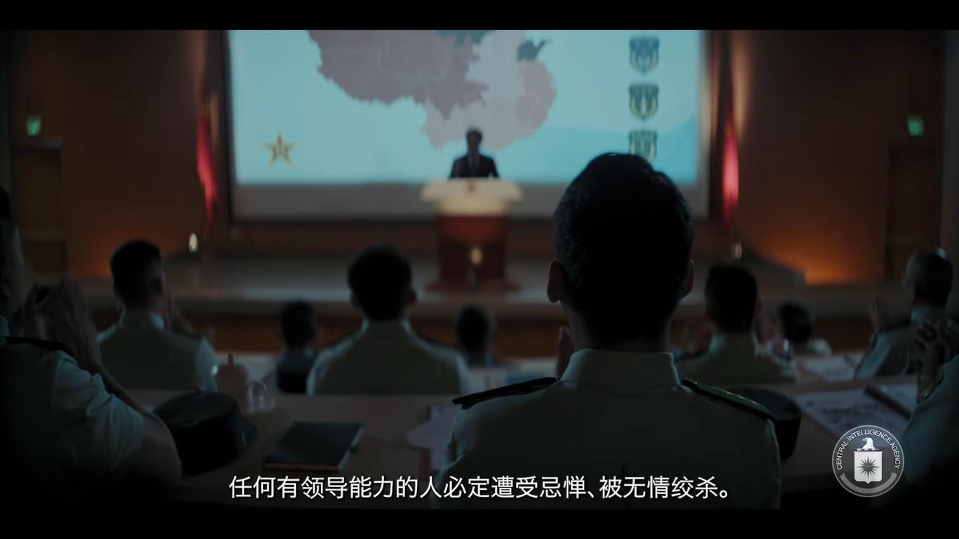 "Anyone with leadership qualities is bound to be subject to suspicion and ruthlessly eliminated," the fictional officer in the video says in Mandarin. "Their power is built on countless lies," he says, referring to superiors.