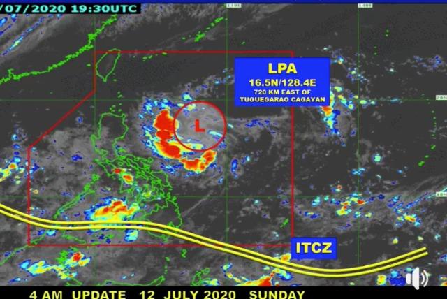 A low pressure area (LPA) located 720 km east of Tuguegarao City, Cagayan at 3 a.m. on Sunday is expected to bring rains over Northern Luzon on Monday or Tuesday.