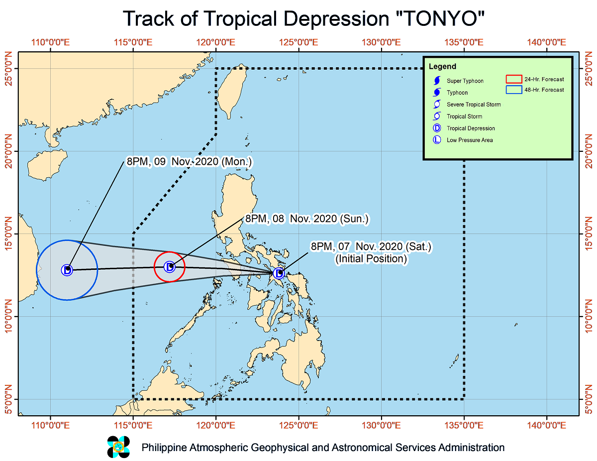 In its 11 p.m. bulletin, the state weather bureau said Tonyo will likely intensify into a tropical storm within the next 24 hours.