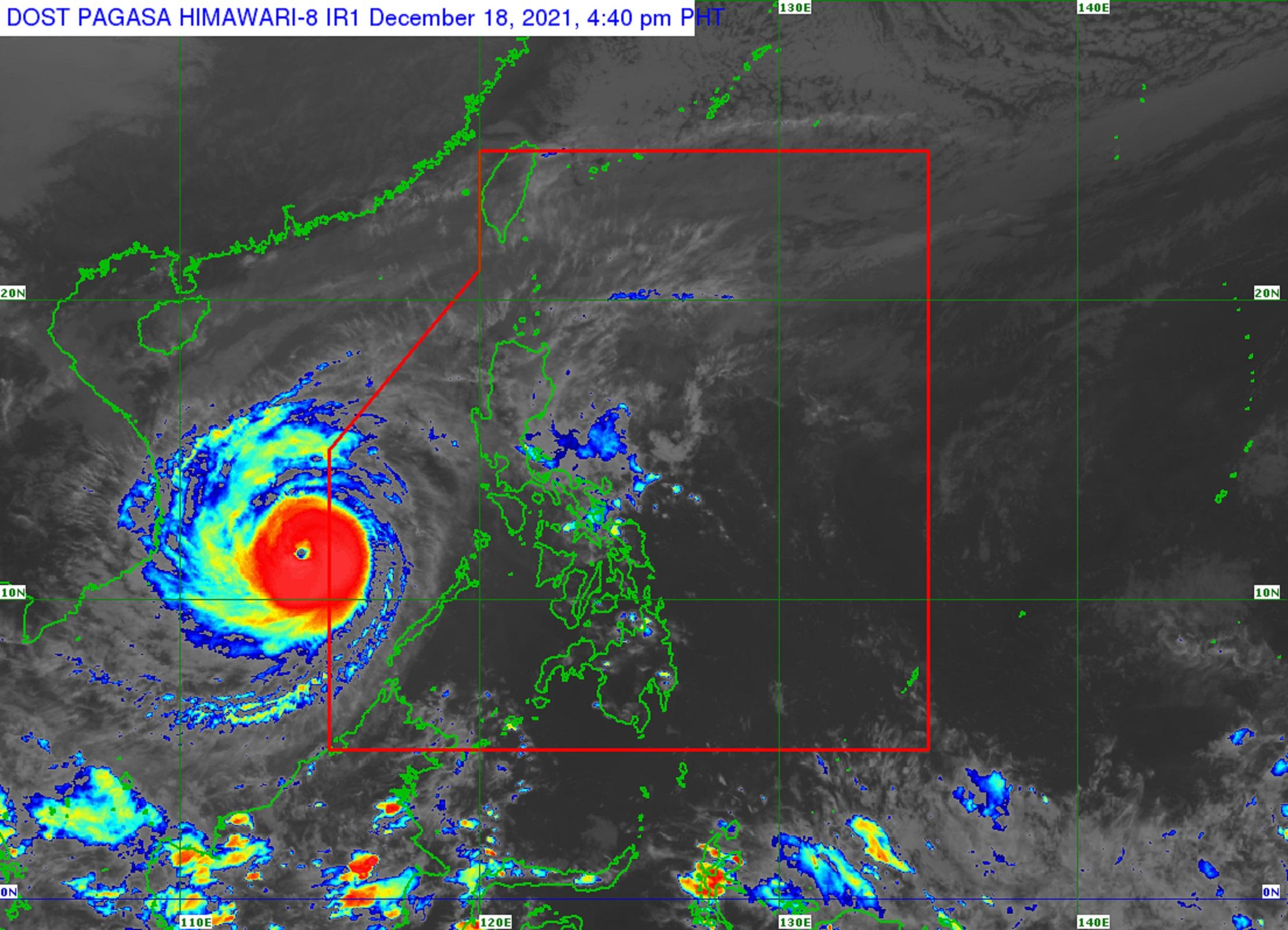 As of 4 p.m., Typhoon Odette was located over the coastal waters of Pag-asa Island, Kalayaan, Palawan (outside PAR).