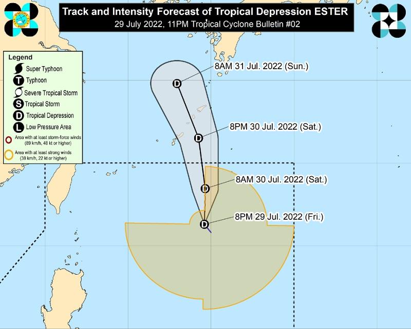 Tropical Depression Ester maintains its strength while moving northwestward over the Philippine Sea, according to the Tropical Cyclone Bulletin issued by PAGASA late Friday evening.