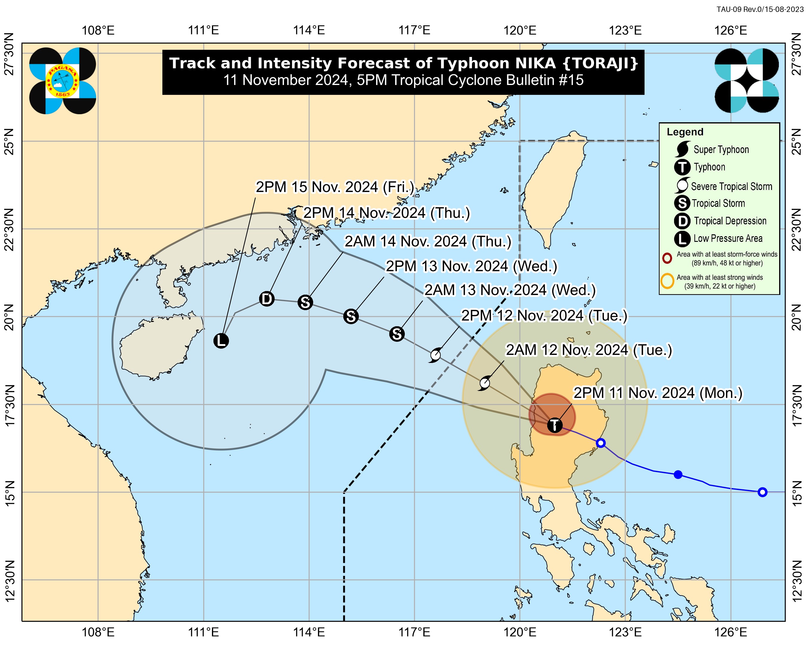 PAGASA said Nika may weaken into a severe tropical storm while traversing mainland Luzon due to land interaction.