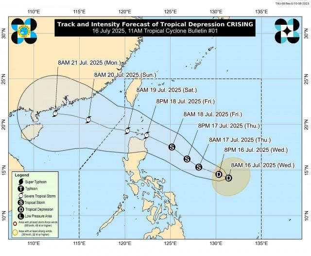 No tropical cyclone wind signals have been raised as of Wednesday, but Tropical Depression Crising may intensify into a Tropical Storm by Thursday morning, according to PAGASA.