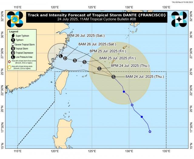 “DANTE is forecast to remain as a tropical storm as it exits the Philippine Area of Responsibility (PAR). It is then expected to weaken over the East China Sea by the weekend due to unfavorable conditions,” it added.