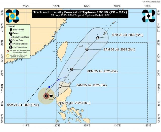 “After briefly crossing the mountainous terrain of northwestern Luzon, EMONG will continue accelerating northeastward over Luzon Strait and the Philippine Sea east of Taiwan. Between tomorrow late morning and evening, it may pass close or make landfall over Babuyan Islands and Batanes,” it added.