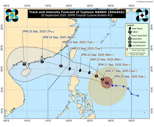 Nando, which is expected to reach a super typhoon category, may pass close or may make landfall over Batanes or Babuyan Islands between Monday (September 22) afternoon or evening. It may leave the Philippine Area of Responsibility by Tuesday (September 23) morning.