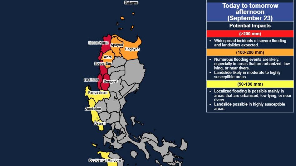 A yellow rainfall warning means flooding is possible particularly in the flood-prone areas of the said cities and provinces.