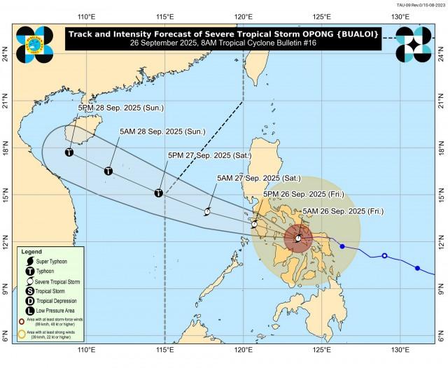 PAGASA said Opong will likely remain a severe tropical storm as it crosses the archipelago.