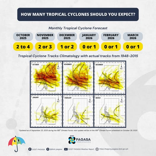 PAGASA said the forecast is based on the agency’s 188th Climate Outlook Forum released on September 24, 2025.