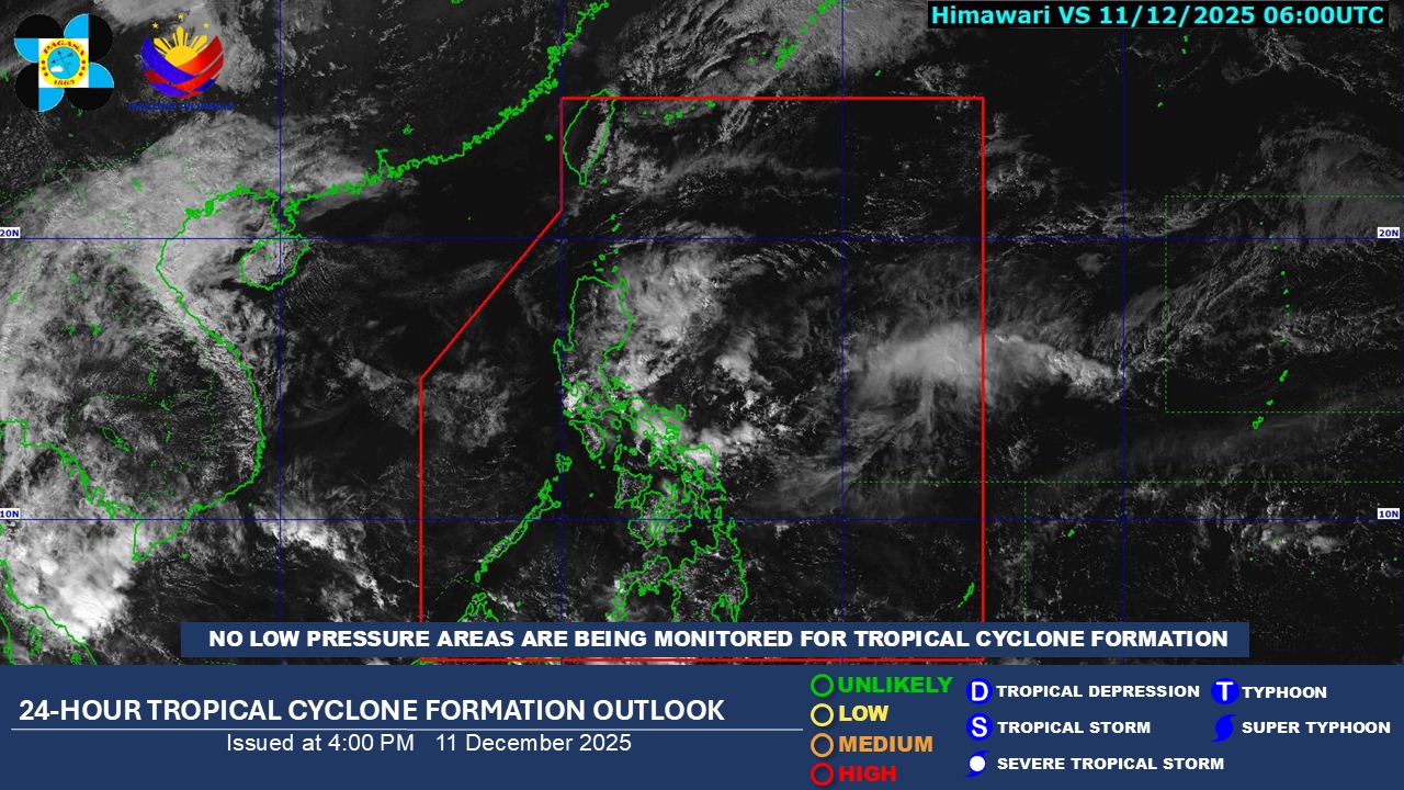 In its 4 p.m. weather forecast, PAGASA said cloudy skies with light rains will be observed over Cordillera Administrative Region, Cagayan, Isabela, Quirino, Nueva Vizcaya, and Aurora due to the Northeast Monsoon (Amihan).