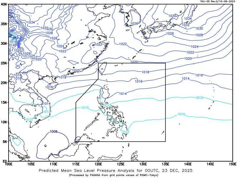 The Northeast Monsoon is expected to bring cloudy skies with rains over Cagayan, Isabela, and Aurora, and partly cloudy to cloudy skies with isolated light rains over Ilocos Region, Cordillera Administrative Region, the rest of Cagayan Valley, and the rest of Central Luzon.