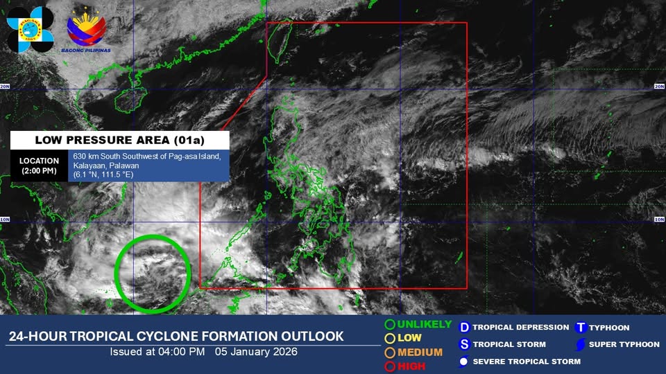 The low pressure area (LPA) monitored outside the Philippine Area of Responsibility is “unlikely” to develop into a tropical depression within the next 24 hours, PAGASA said Monday afternoon.