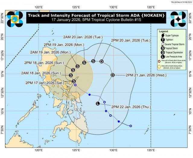 "ADA is forecast to remain as a tropical storm while moving over the sea east of Luzon. However, further intensification to severe tropical storm is not ruled out," PAGASA said.