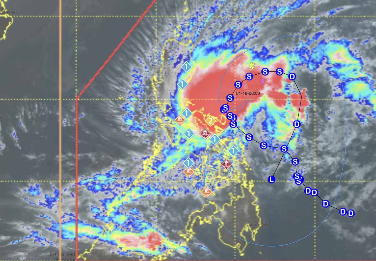 2 areas under Signal No. 2 as Ada moves over Southern Luzon