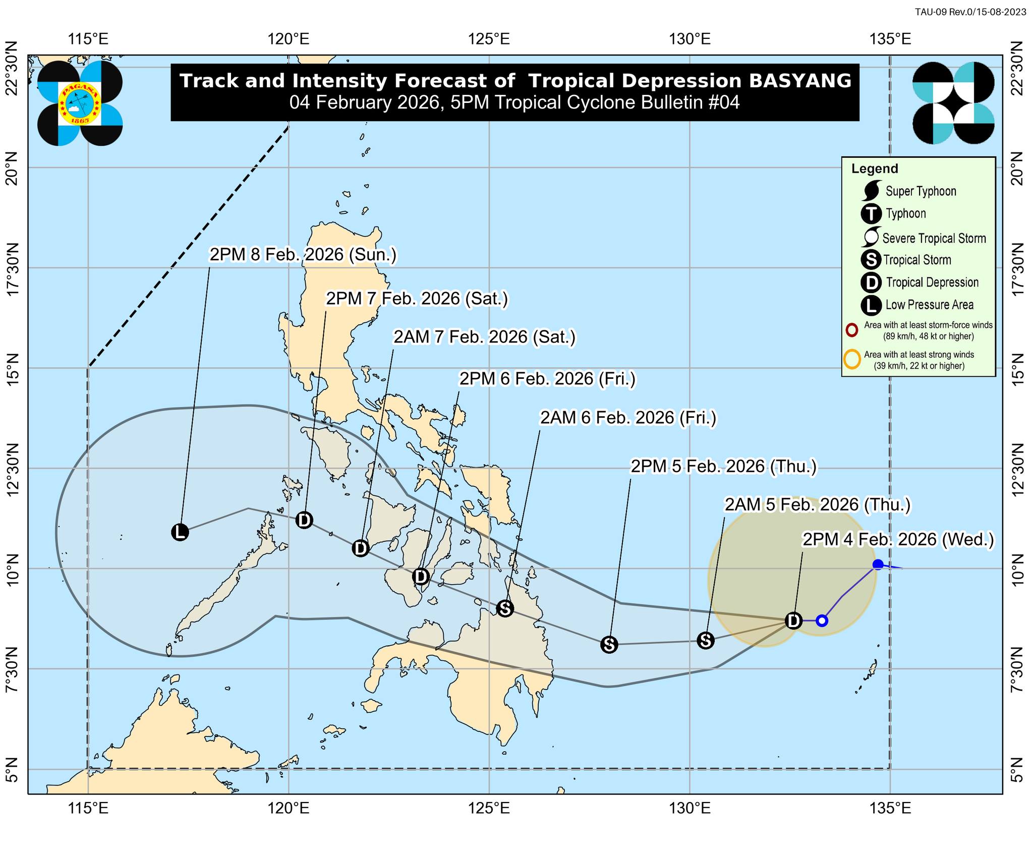 BASYANG is seen to move generally westward for the next 36 hours before turning west northwestward beginning Thursday evening.