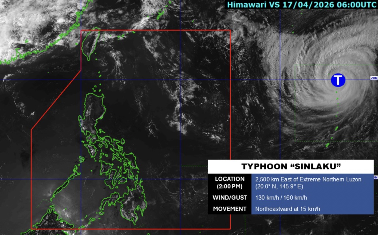 According to PAGASA’s daily weather forecast on Friday afternoon, Typhoon Sinlaku was last seen at 2,500 kilometers east of Northern Luzon and outside the PAR at 3 p.m.