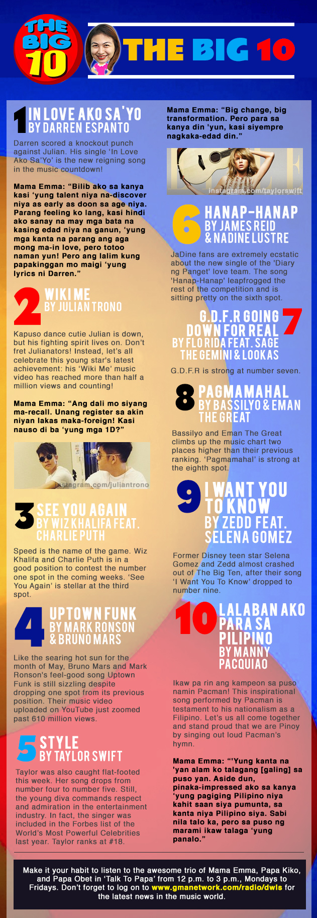 Everybody is in for a treat this week because the lovely Mama Emma will be reviewing the top ten songs for this week’s music chart.