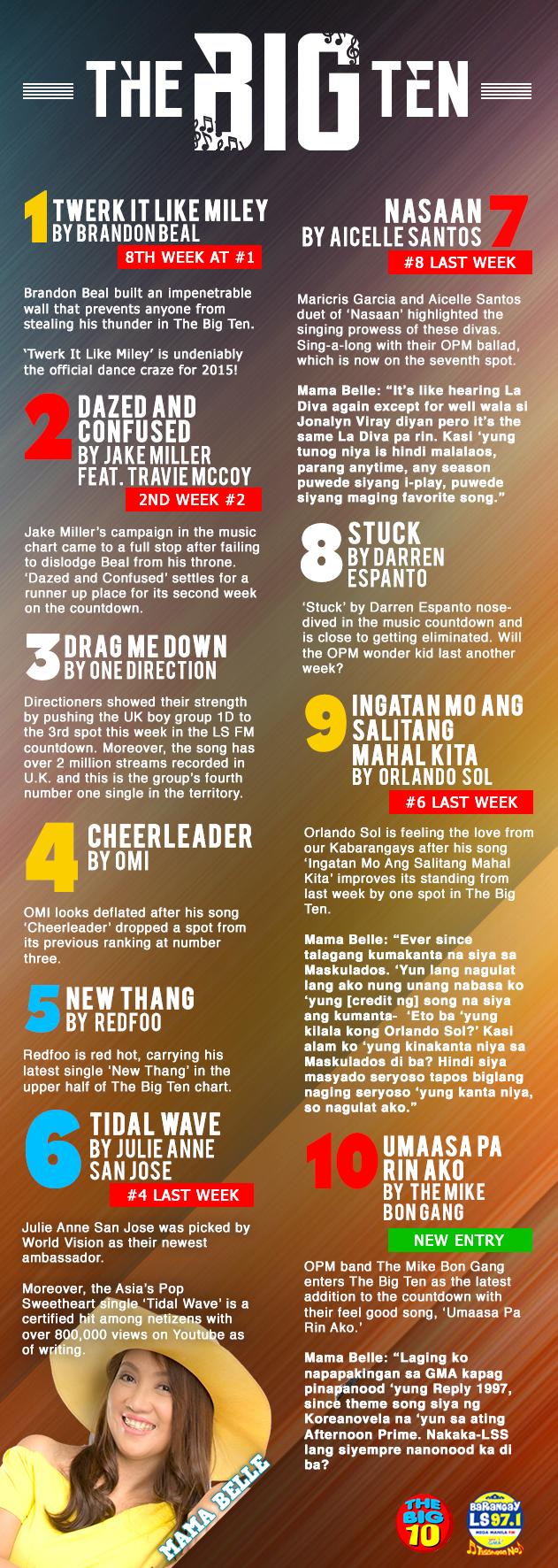 Meanwhile, young rapper Silento’s Nae Nae dance single dropped out of the ten elite songs of Barangay LS FM's official countdown.