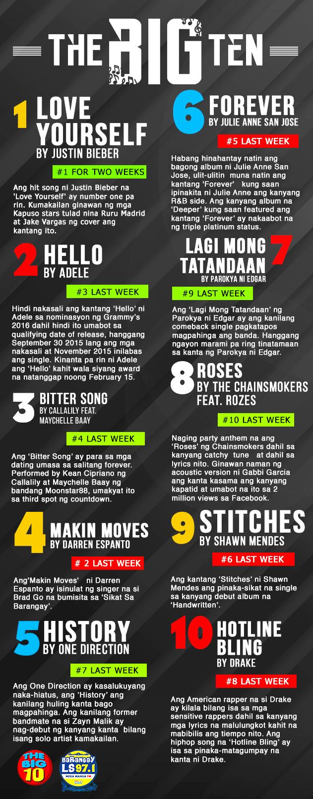 Tulad ng maraming Kapuso stars may Bieber fever pa rin sa The Big Ten dahil hanggang ngayon nasa number one spot pa rin ang kantang ‘Love Yourself’.